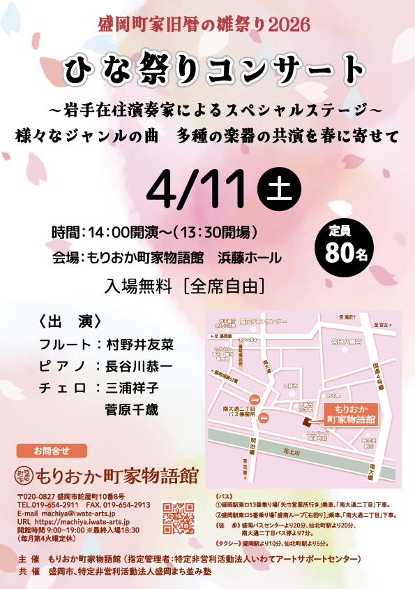 Tel 019-654-2911 Mail machiya@iwate-arts.jp