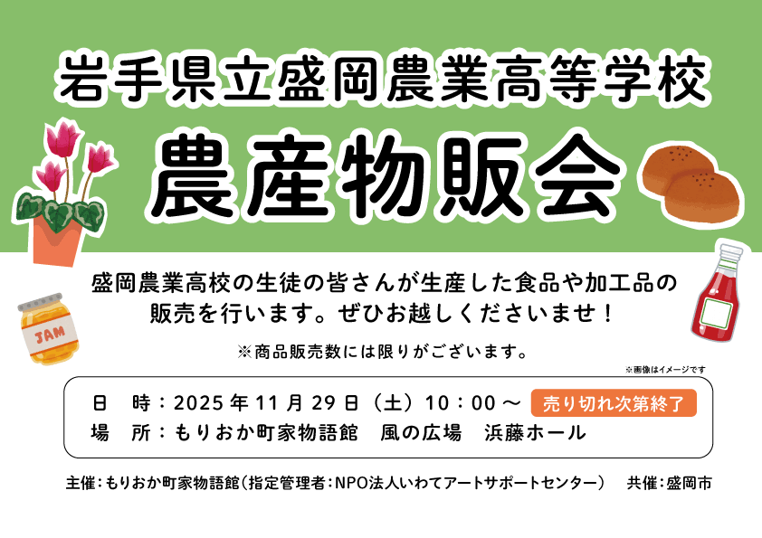 日 時:2025年11月29日(土)10:00~売り切れ次第終了