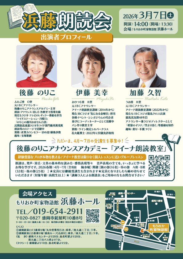 ~「アイーナ朗読教室」3人の講師が奏でる朗読の世界~