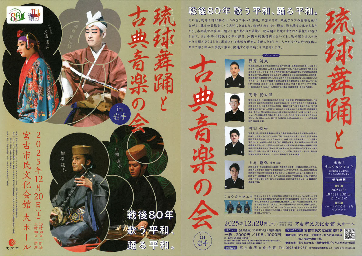 2025年10月25日(土) 13:30開演/17:00開演(開場は開演30分前) 入場料: 前売 一般2,500円(当日3,000円)※全席自由 問合せ:NPO法人いわてアートサポートセンター 風のスタジオ TEL 019-604-9020
